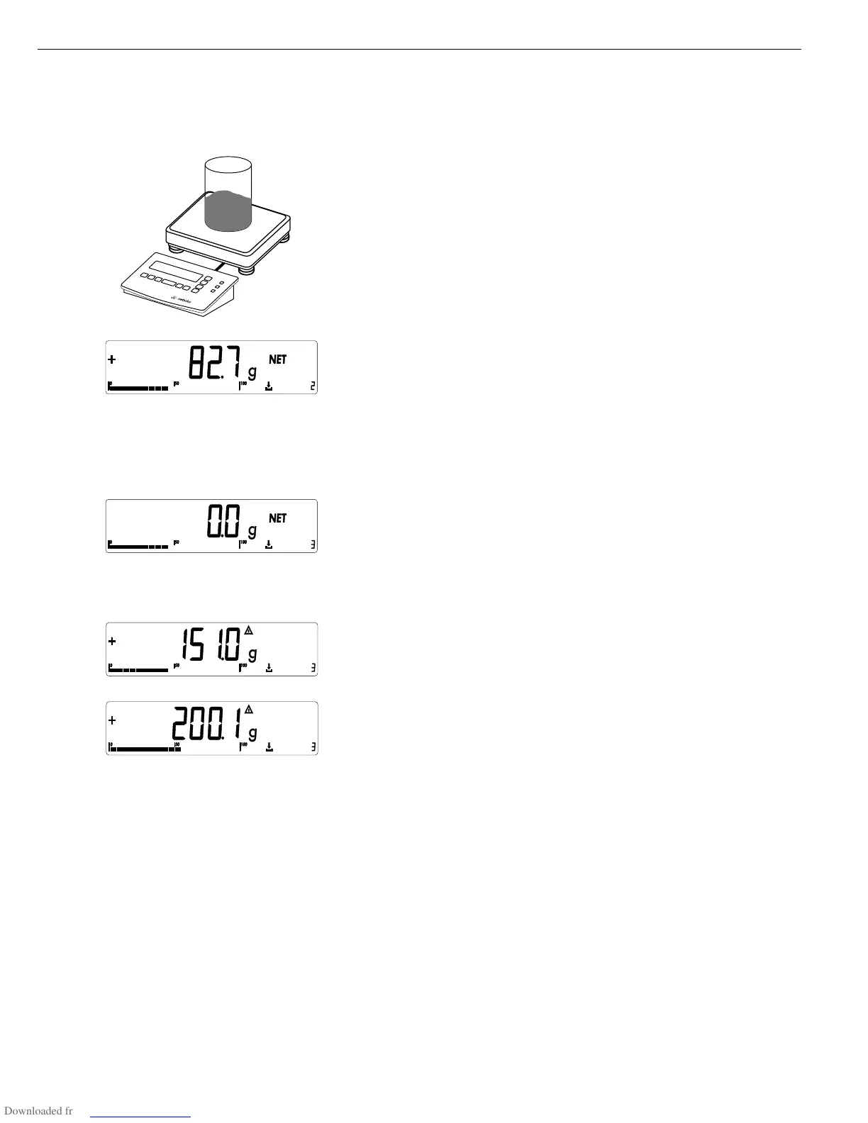 Cont.T+ 50.0 g Content of tare memory (container weight)