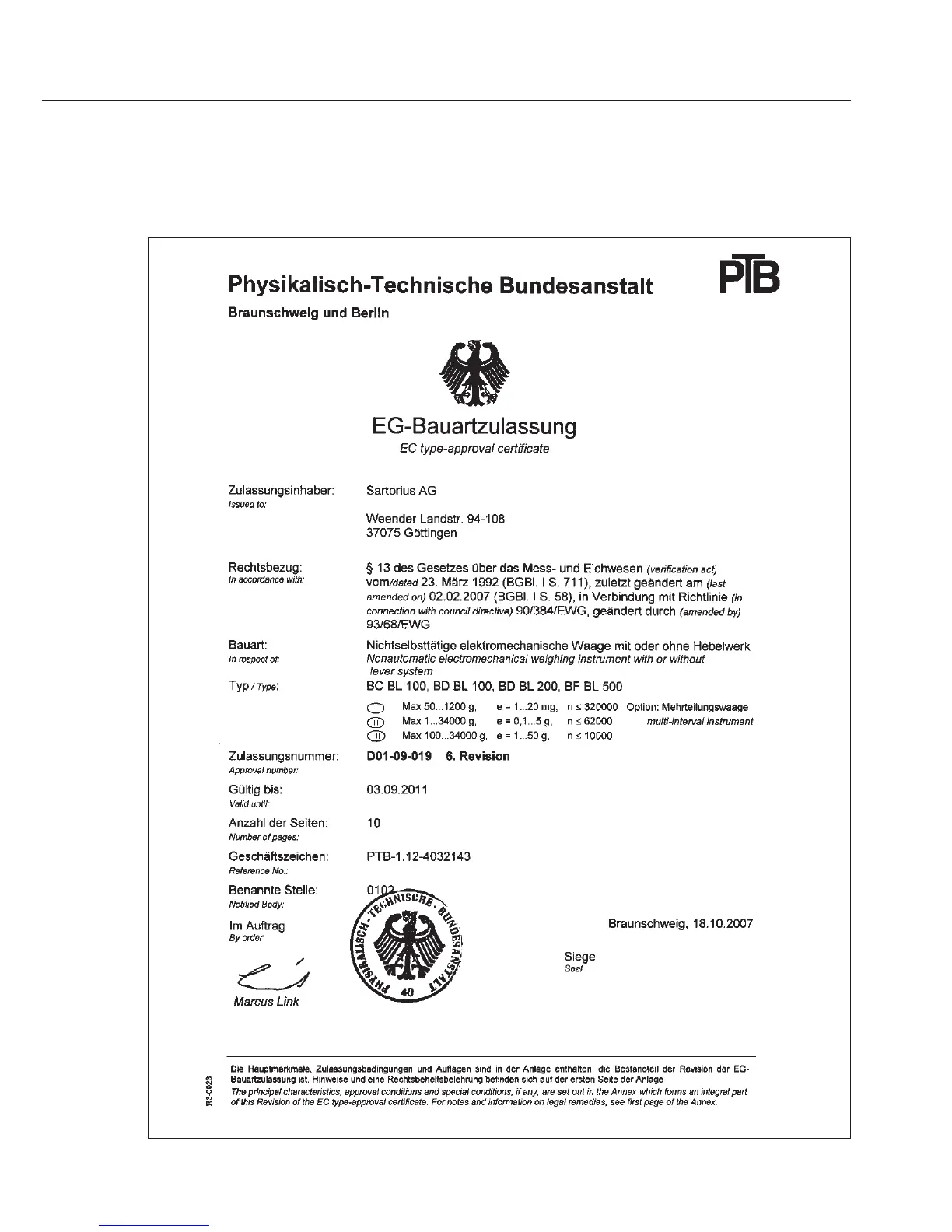 Sartorius CPA3202S - EC Type-Approval Certificate