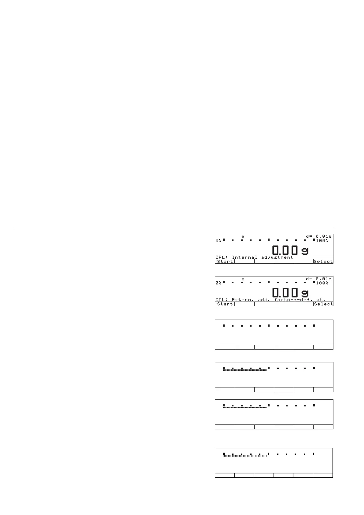 In the selection mode: Perform external calibration followed by automatic adjustment with the factory-set weight