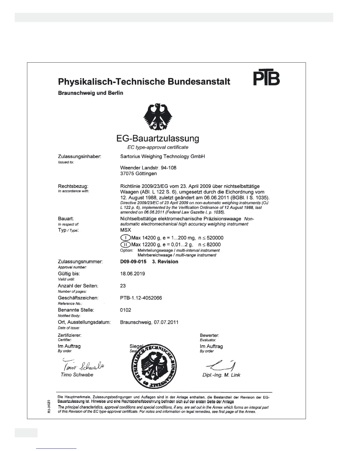 Sartorius MSA6.6S - EC Type-Approval Certificate