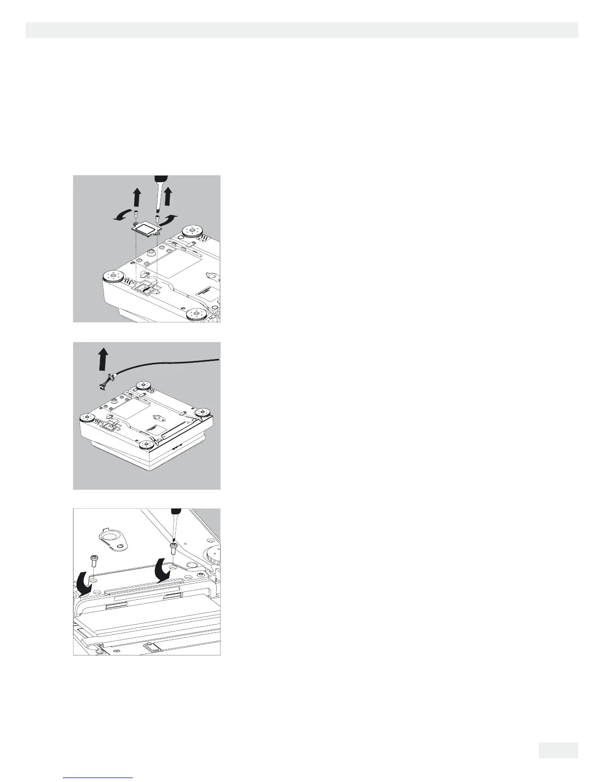 t Remove two screws from beneath the weigh cell and detach the plate.