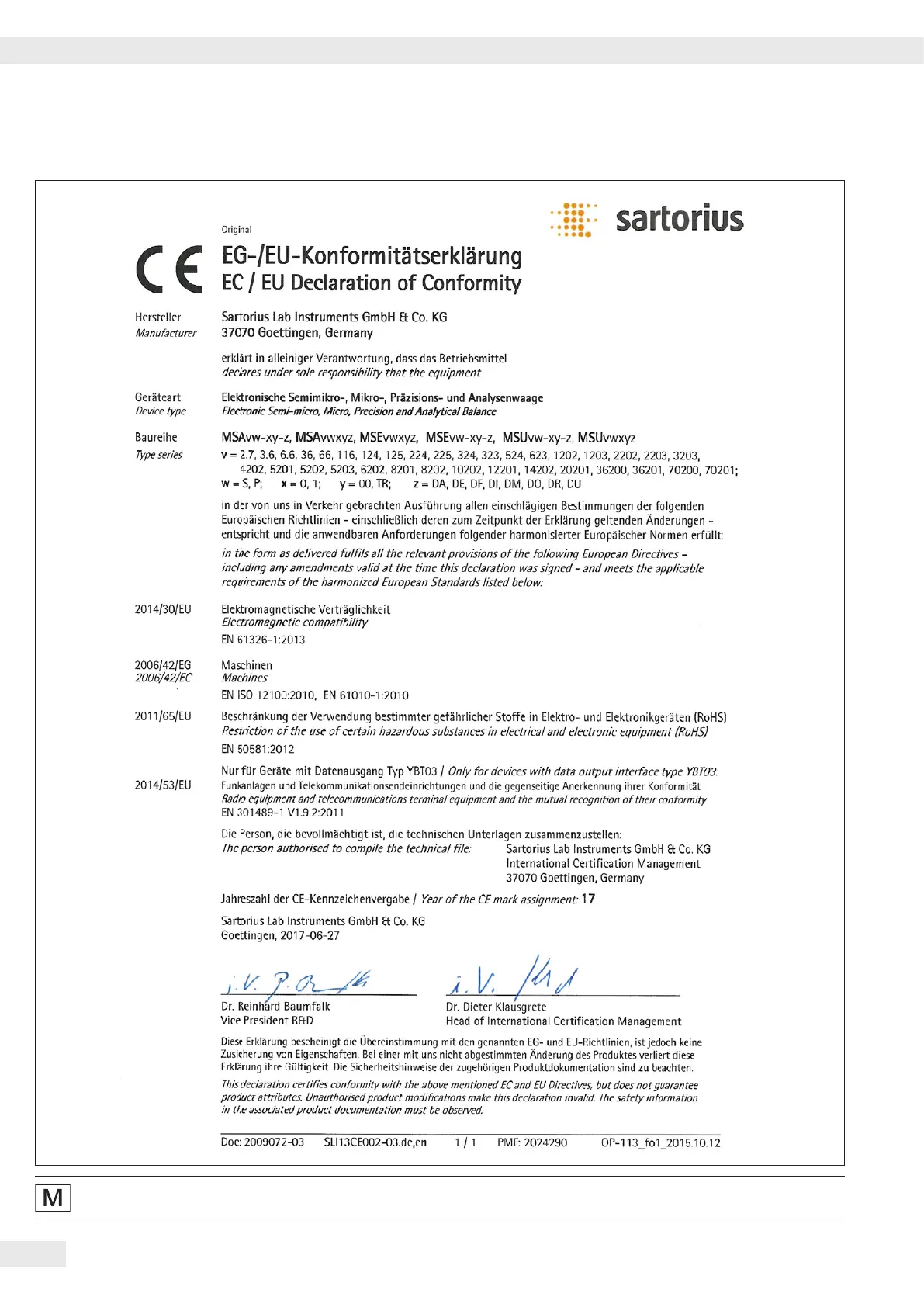 Sartorius MSE225S - EC; EU Declaration of Conformity