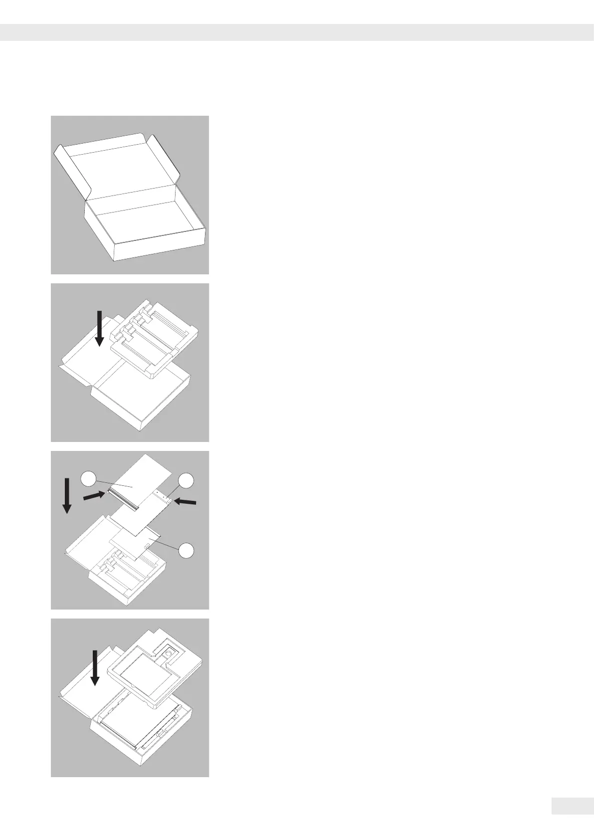 3) Place the other side panel into the packaging (handle downwards)�