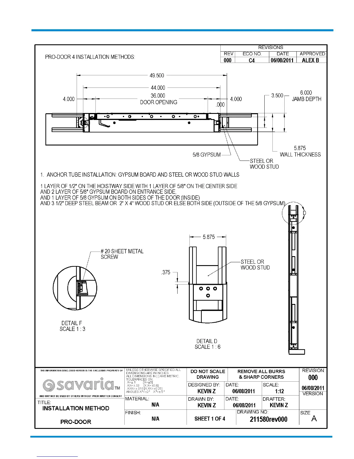 sarvaria Multilift - Pro-Door Installation Method 1: Anchor Tube Installation (Drywall)