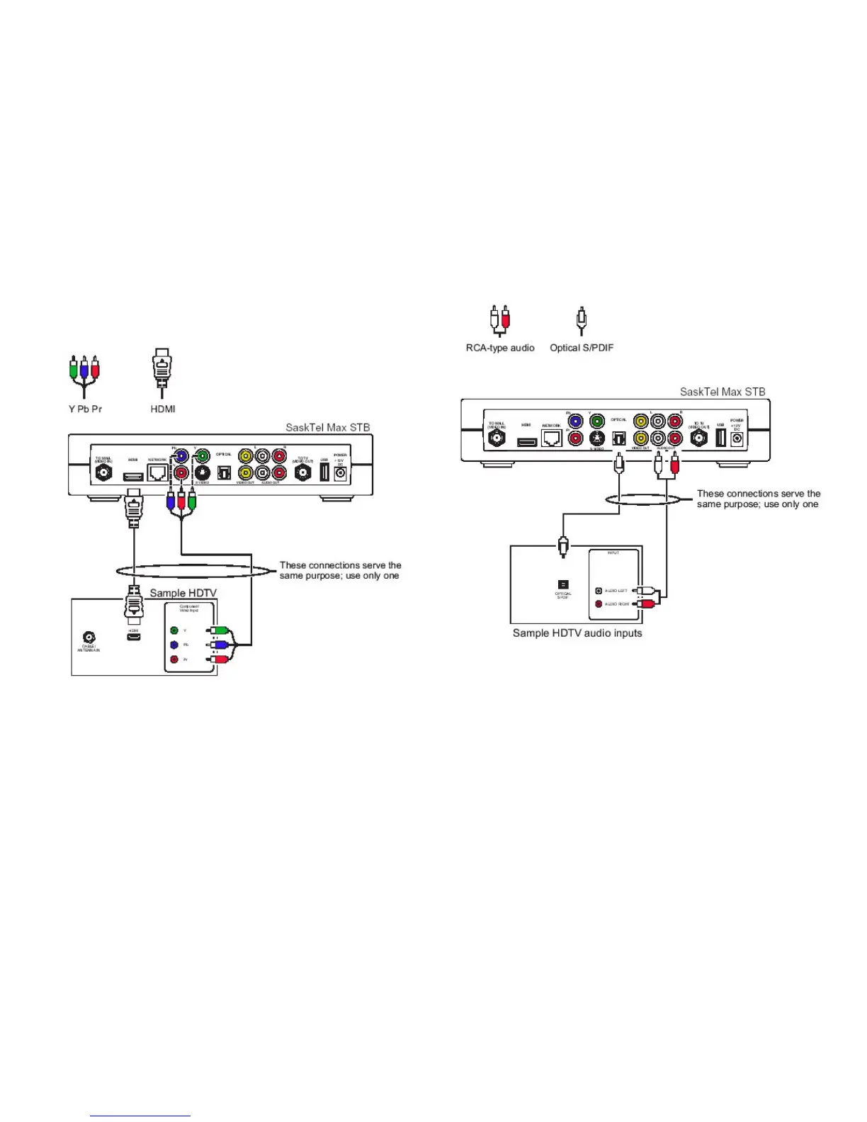 SaskTel maxTV - Connecting to an HDTV - Video Only; Connecting to an HDTV - Audio Only; Connecting Components