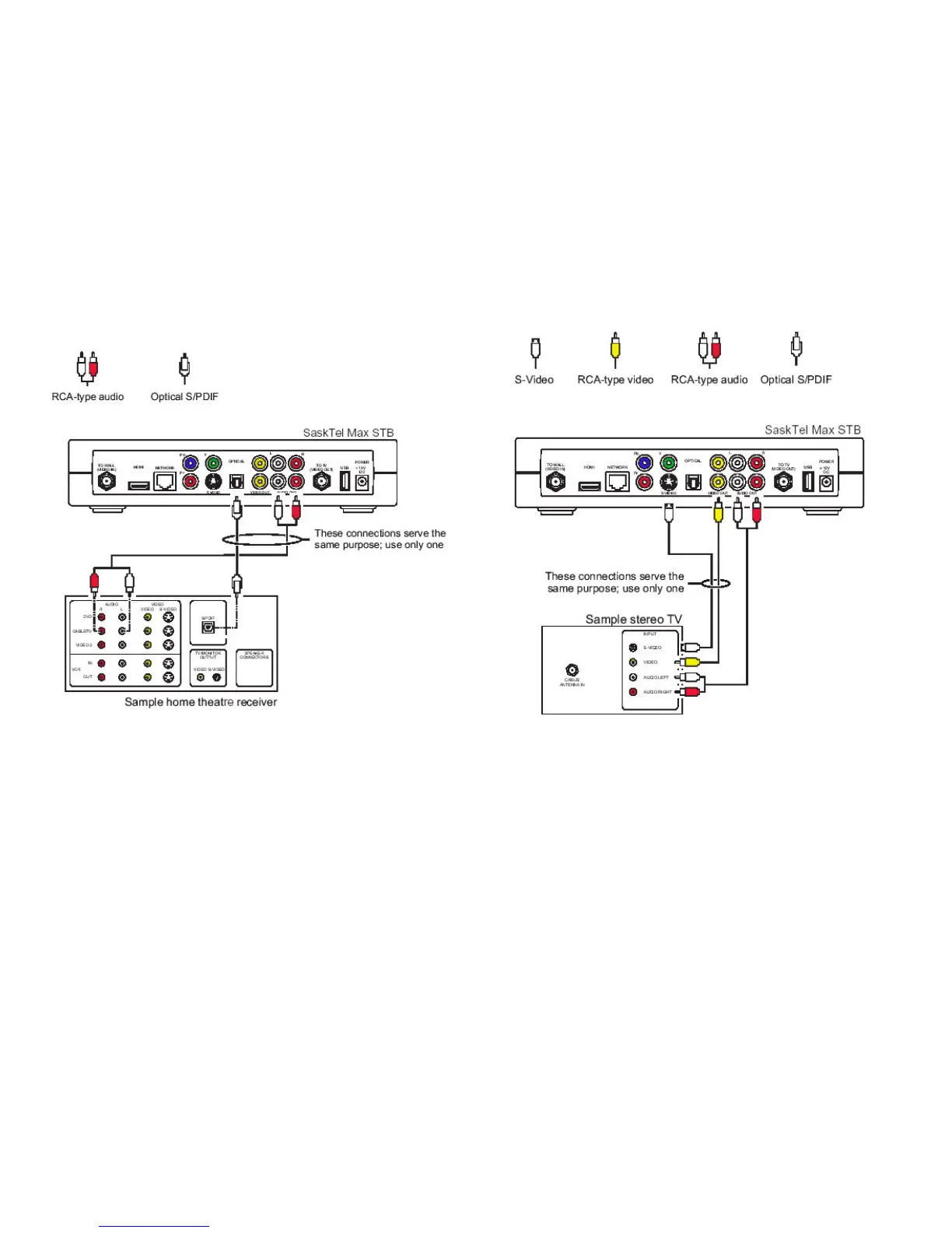 SaskTel maxTV - Connecting to a Home Theatre Receiver; Connecting to a Stereo TV