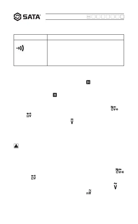 2.Conmute el interruptor de función a posición o mV, se muestra: " " se