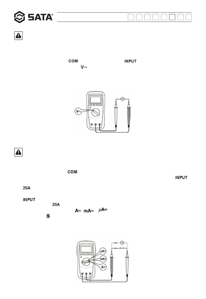 Quando o valor absoluto da corrente a ser medida for ≥400mA (não pode exceder 20A), conecte a sonda vermelha à tomada