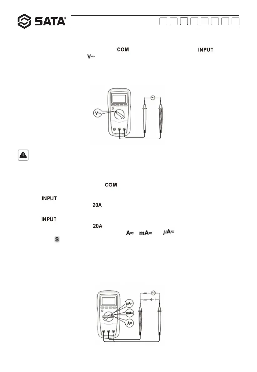 Buchse " ". Wenn der Absolutwert des zu messenden Stroms ≥400mA ist (Es darf 20A nicht überschreiten), verbinden