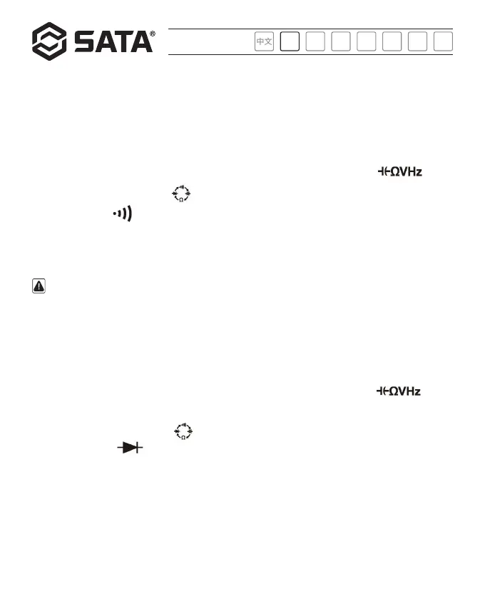1. Insert the black probe into the “COM” jack and the red probe into the “ ” jack.
