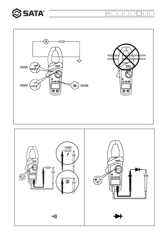 Medição de corrente CA e CC (somente corrente CC 03026)