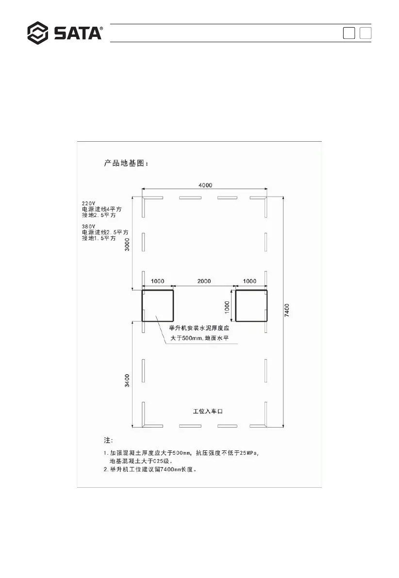 - 清理干净安装举升机区域,地面不可以有任何油污