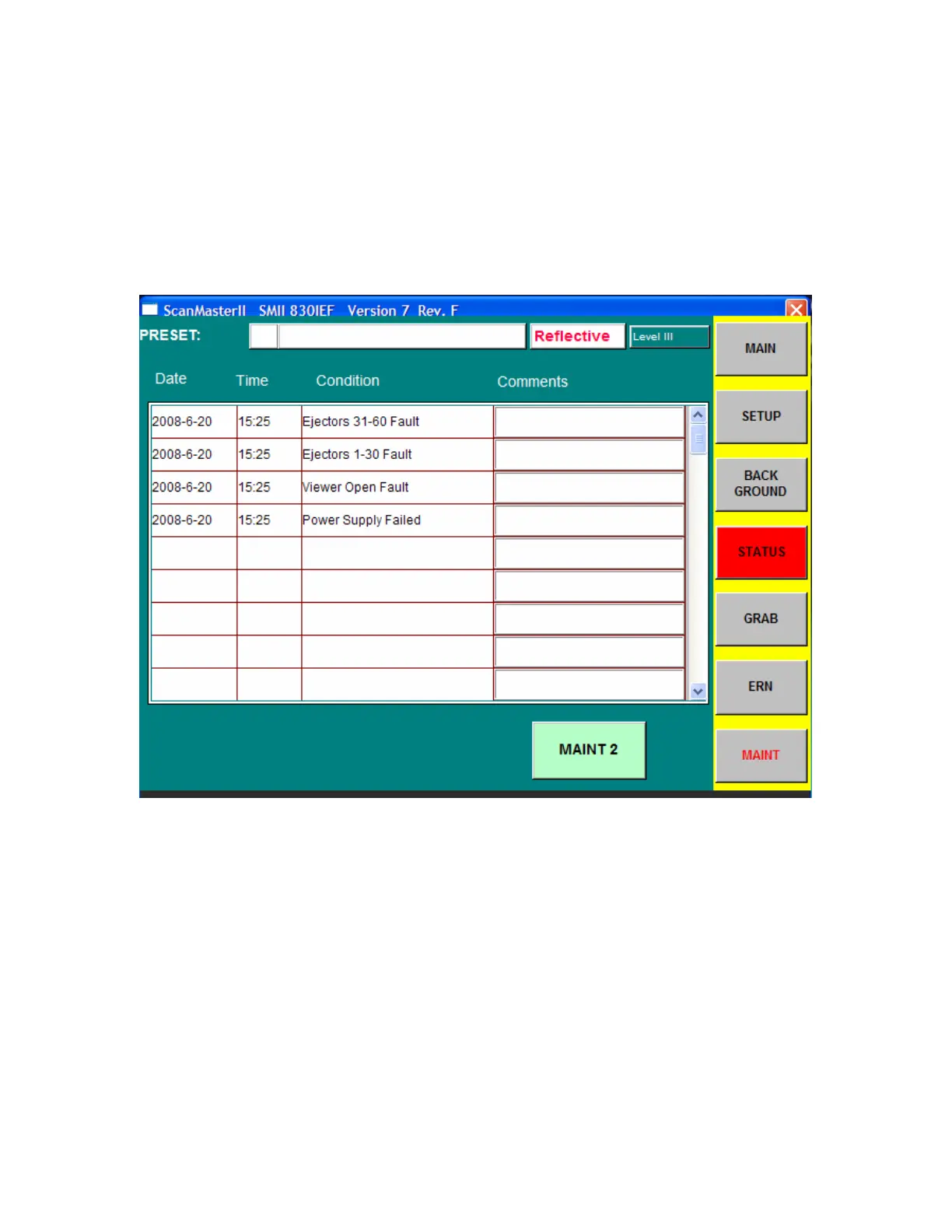 Satake Scan Master II - Maintenance1 Screen