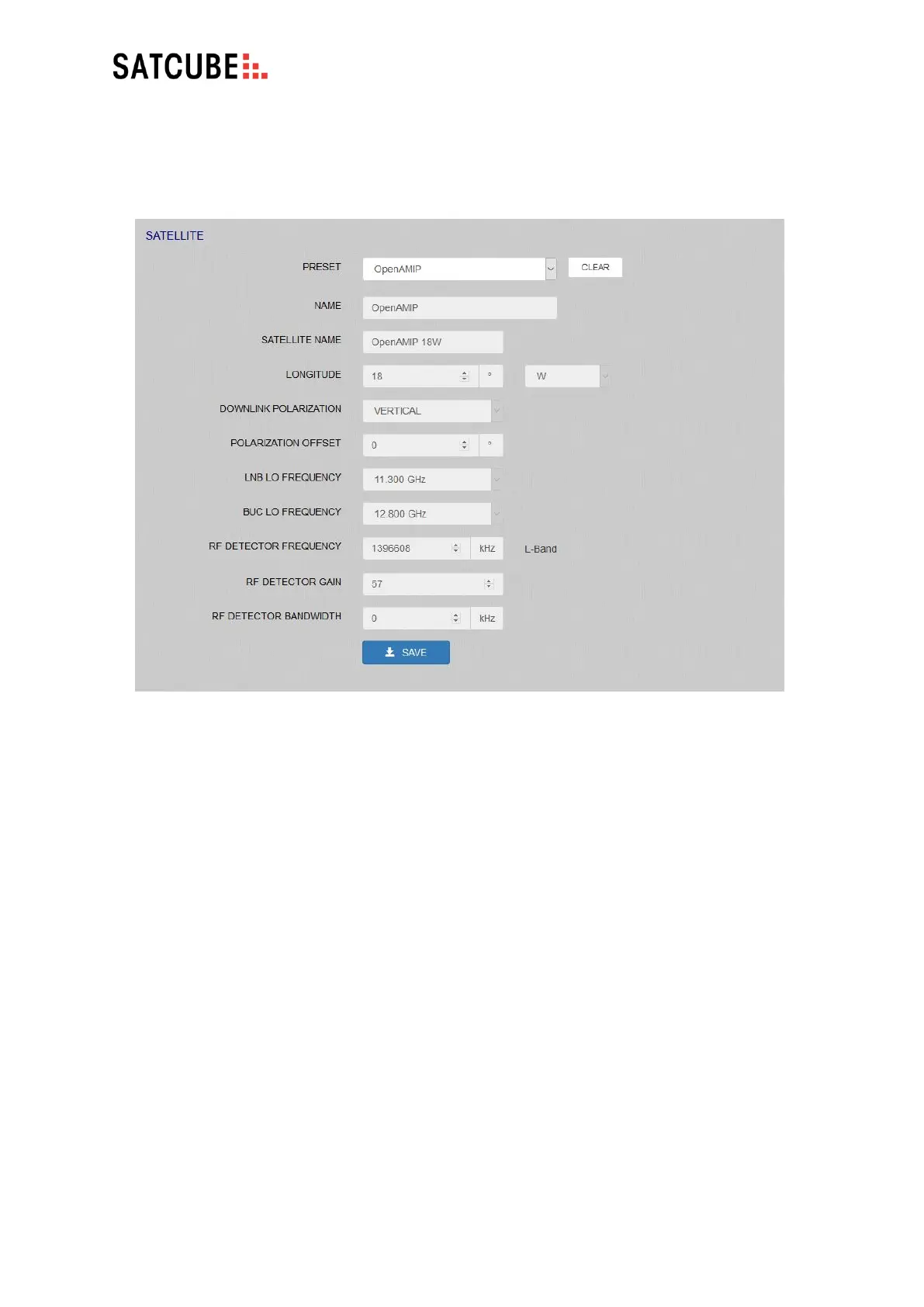• LNB/BUC LO FREQUENCY: Enter the frequencies appropriate for the selected satellite. LNB is