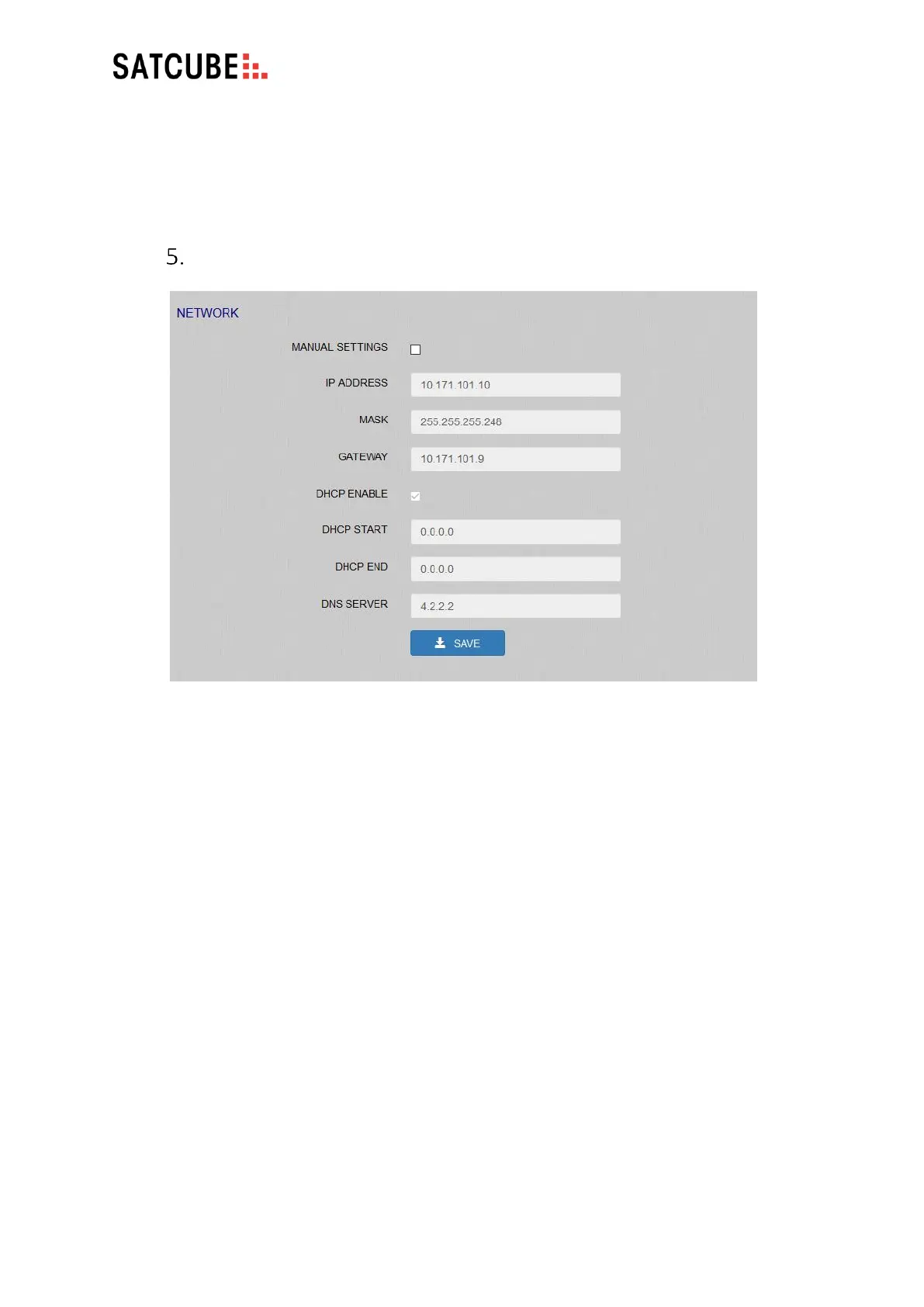 • MASK: Netmask assigned to the Satcube terminal.
