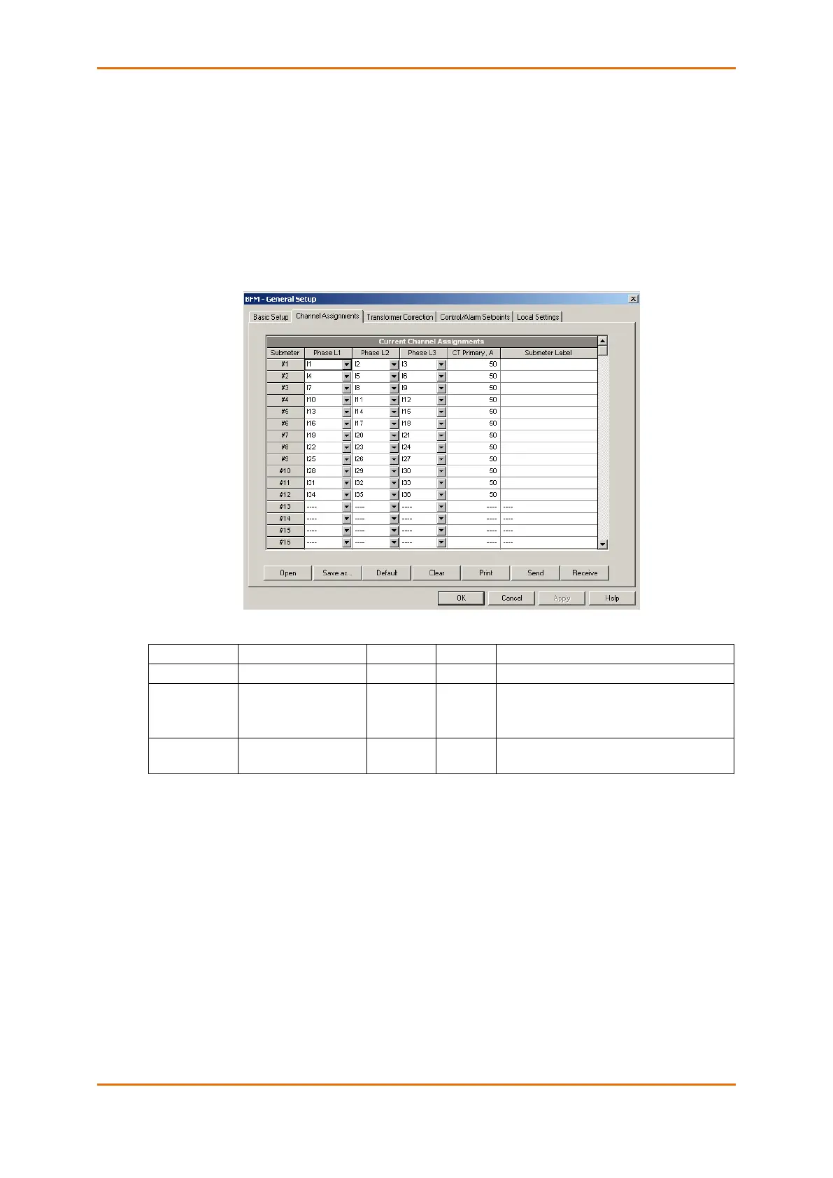 The Channel Assignments setup allows you to link the device current terminals to submeters so they can
