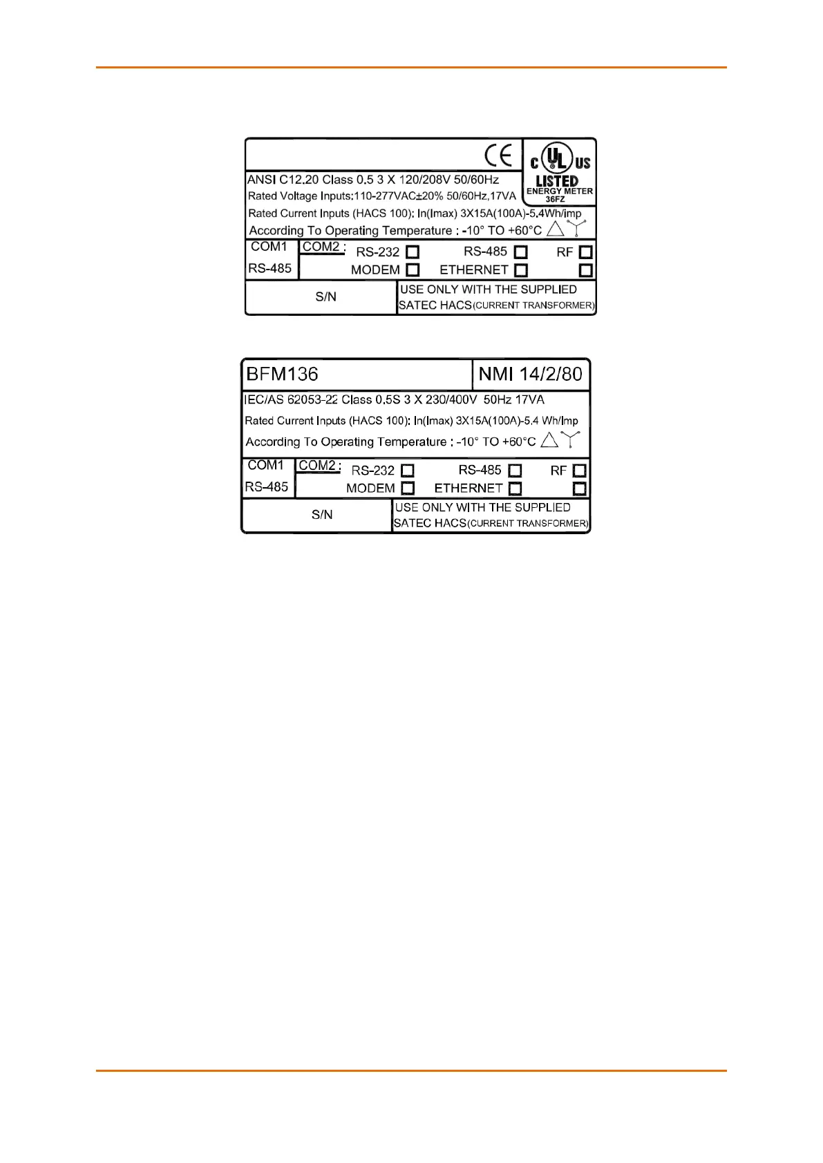 Satec BFM 136 - Labeling