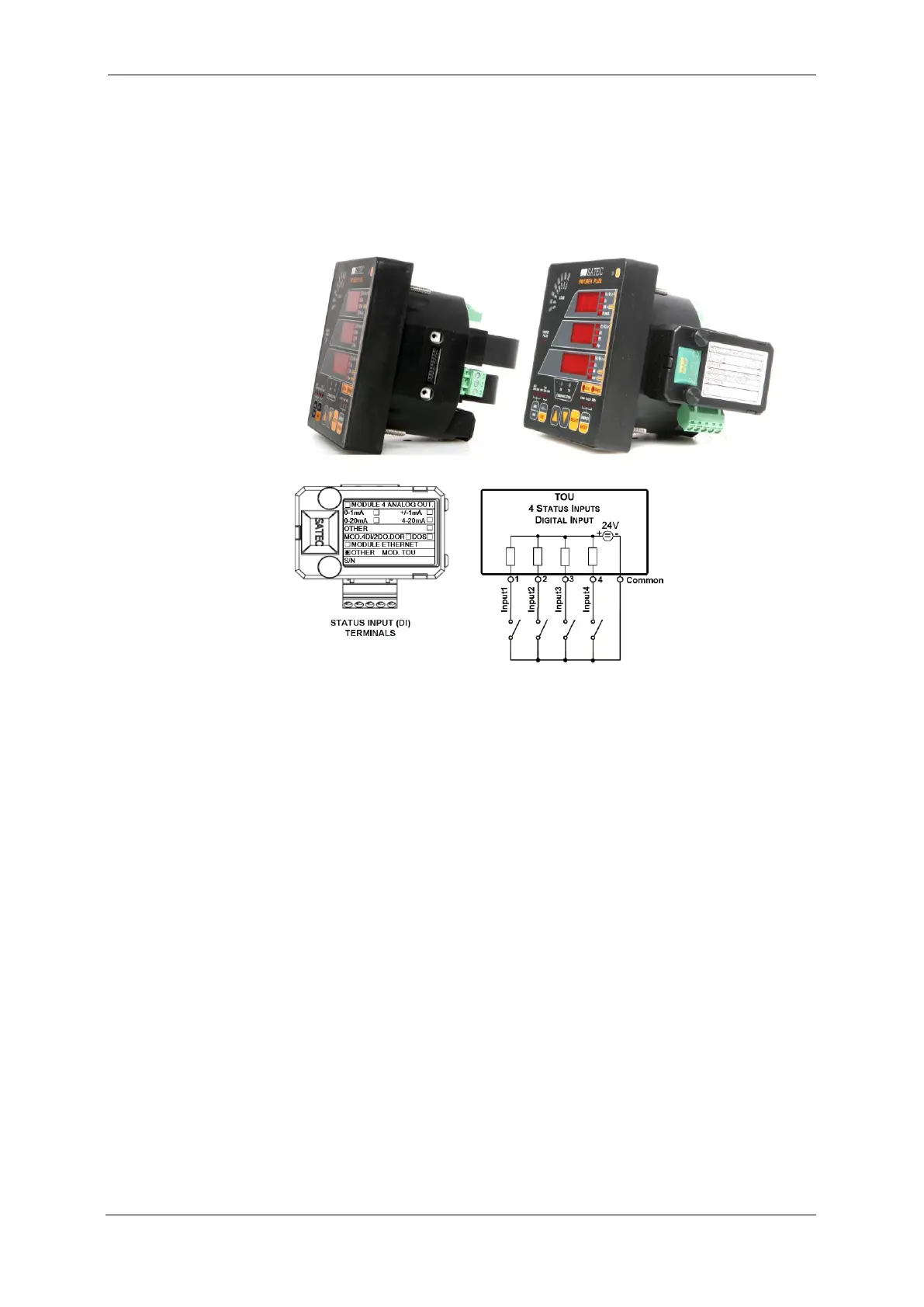 optically isolated inputs for status monitoring, time synchronization, pulse