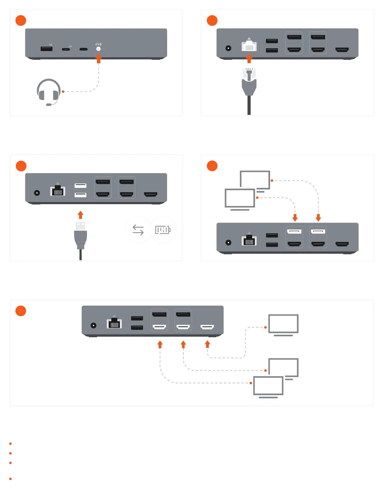 Connect an RJ45 Ethernet cable to the dock’s Gigabit