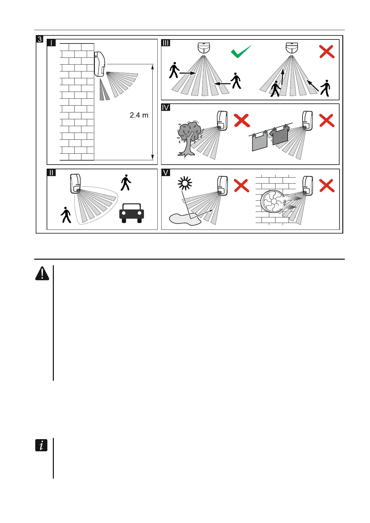 If the detector is to be immune to the motion of pets, it should be mounted at