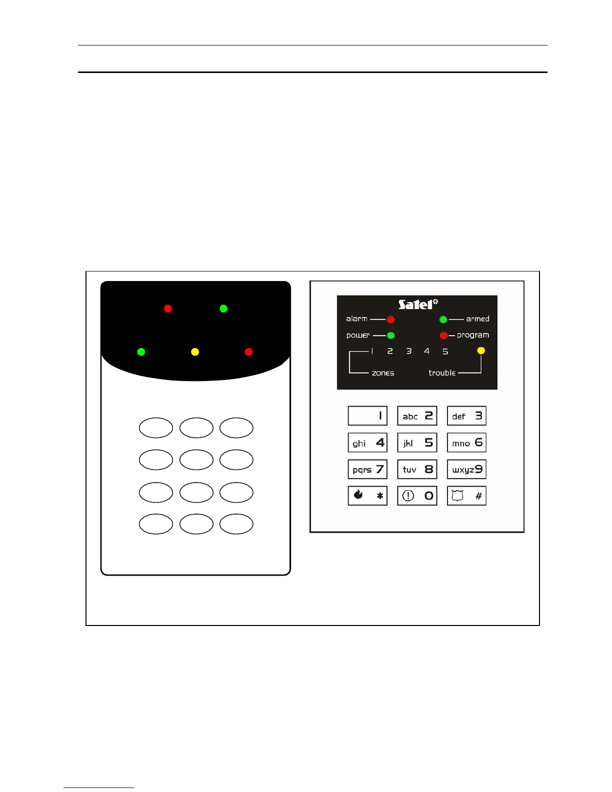 The keypad provides information on the security system status by means of 10 light emitting