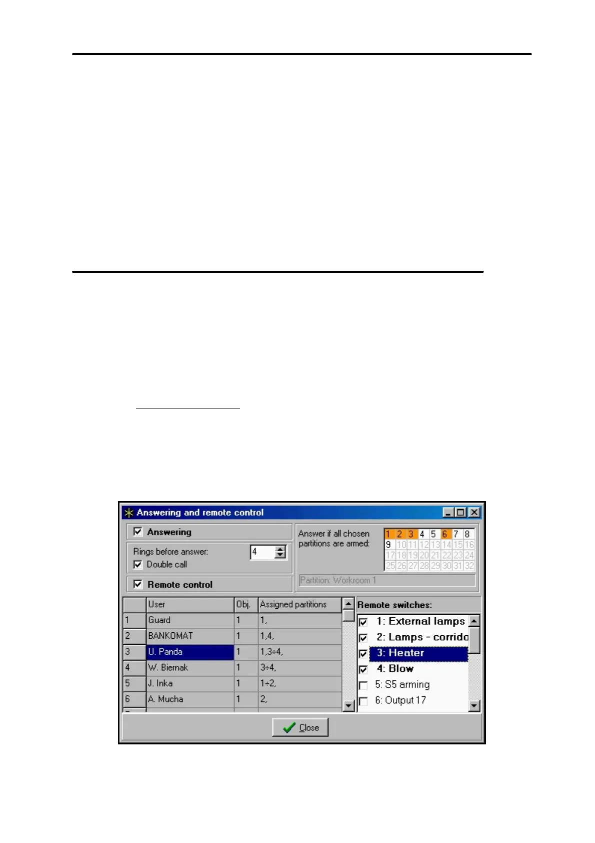 – the partition is disarmed, four short beeps and one long beep - the partition is