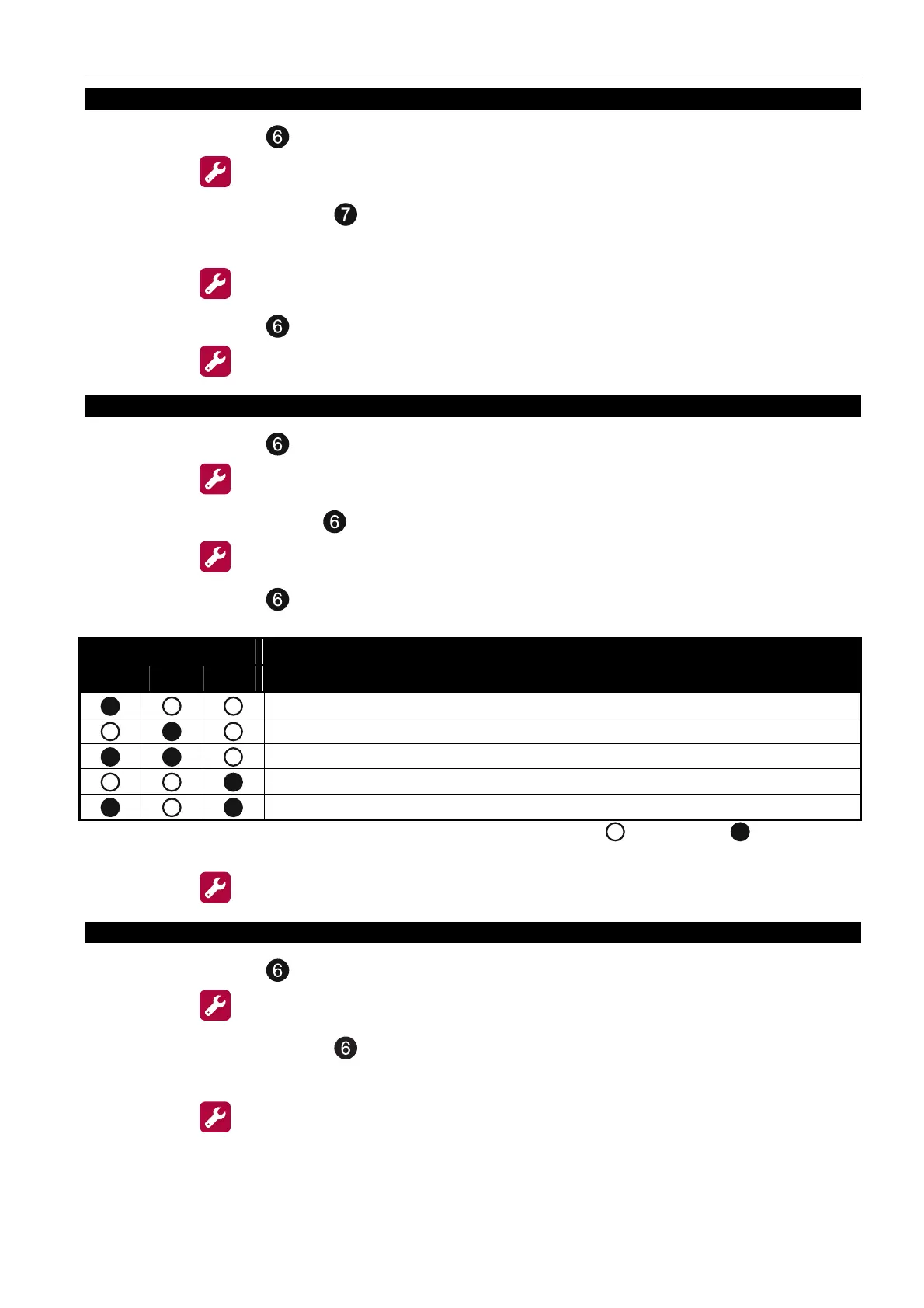 Table 5. Presentation of the operating mode using the LEDs ( - LED OFF; - LED ON).