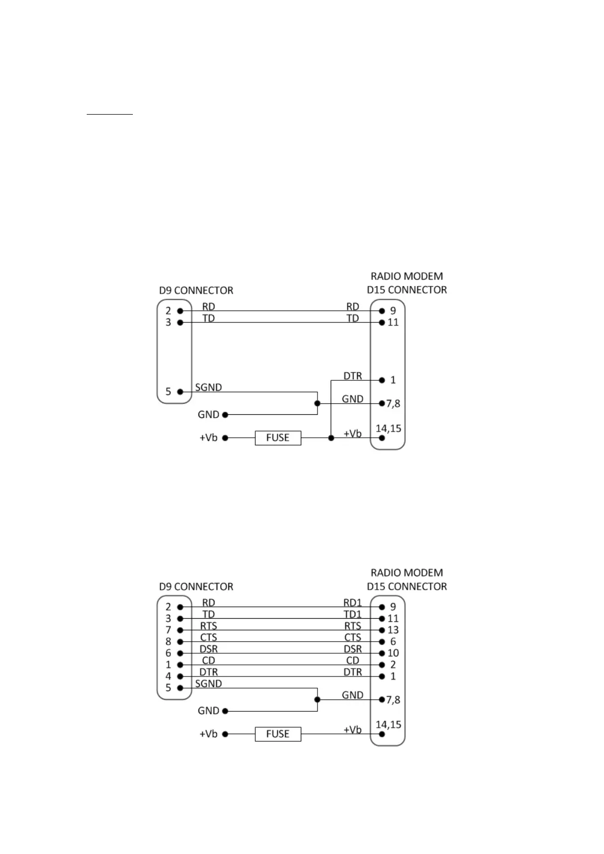 A typical connection between the Port 1 of the radio modem and the PC serial port (RS-232)
