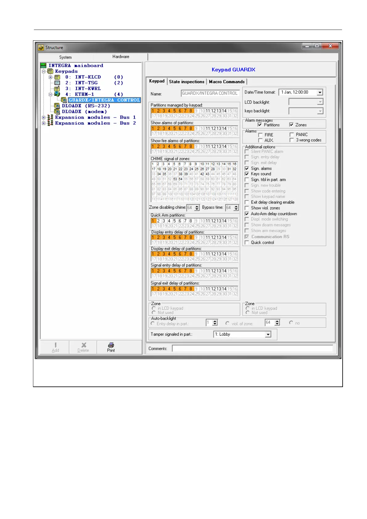 “GUARDX/INTEGRA CONTROL” item “Macro Commands” tab).