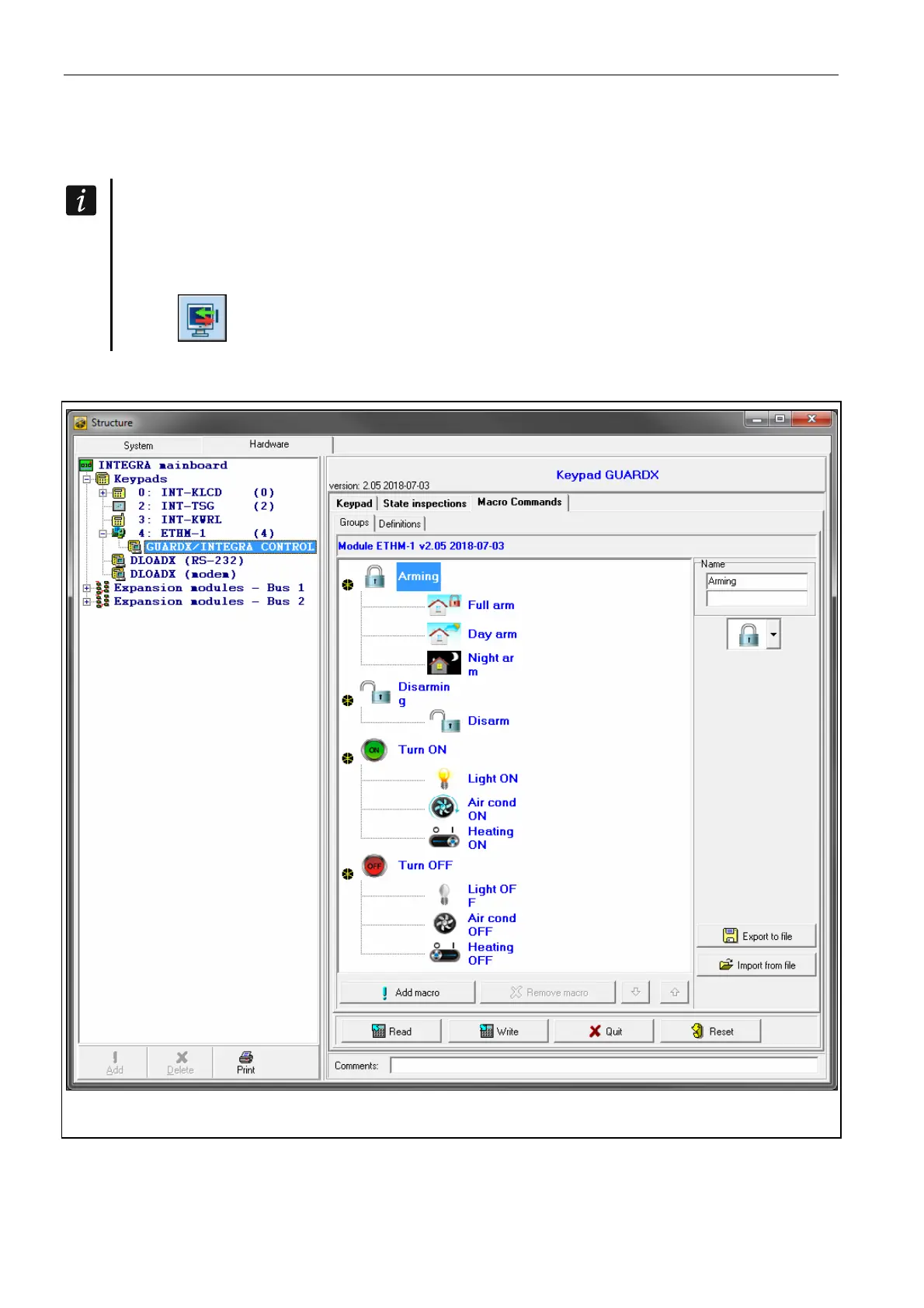 to the module. The macro command related data are not read / written when you click