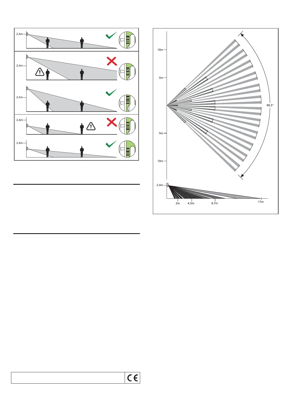 Note: Effective range of the detector may differ from that shown in the drawing.