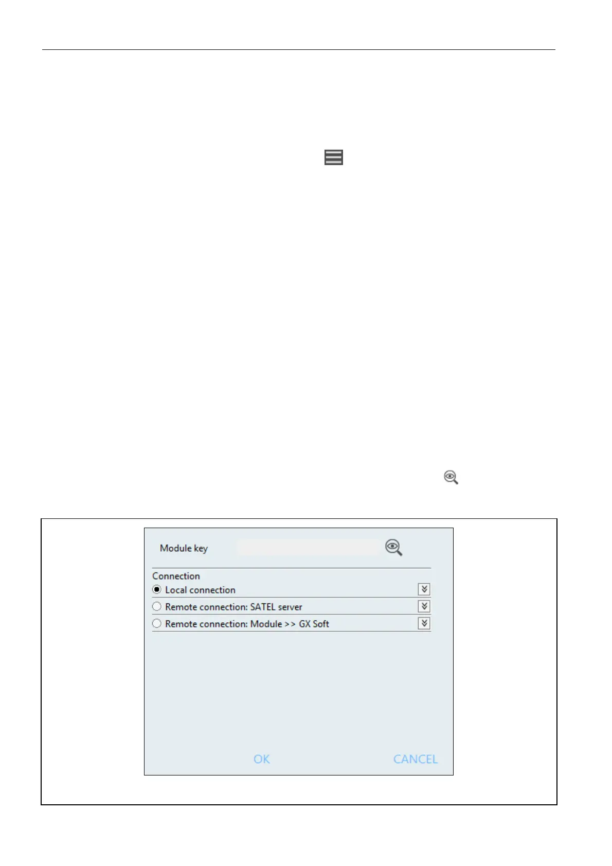 In the window, you can choose how connection with the module is to be established: