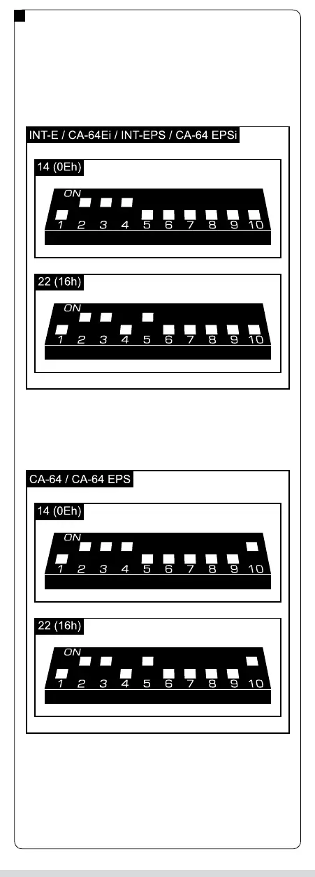 RYSUNEK 2. Przykłady ustawienia przełączników typu DIP-switch (adres 14 (0Eh)