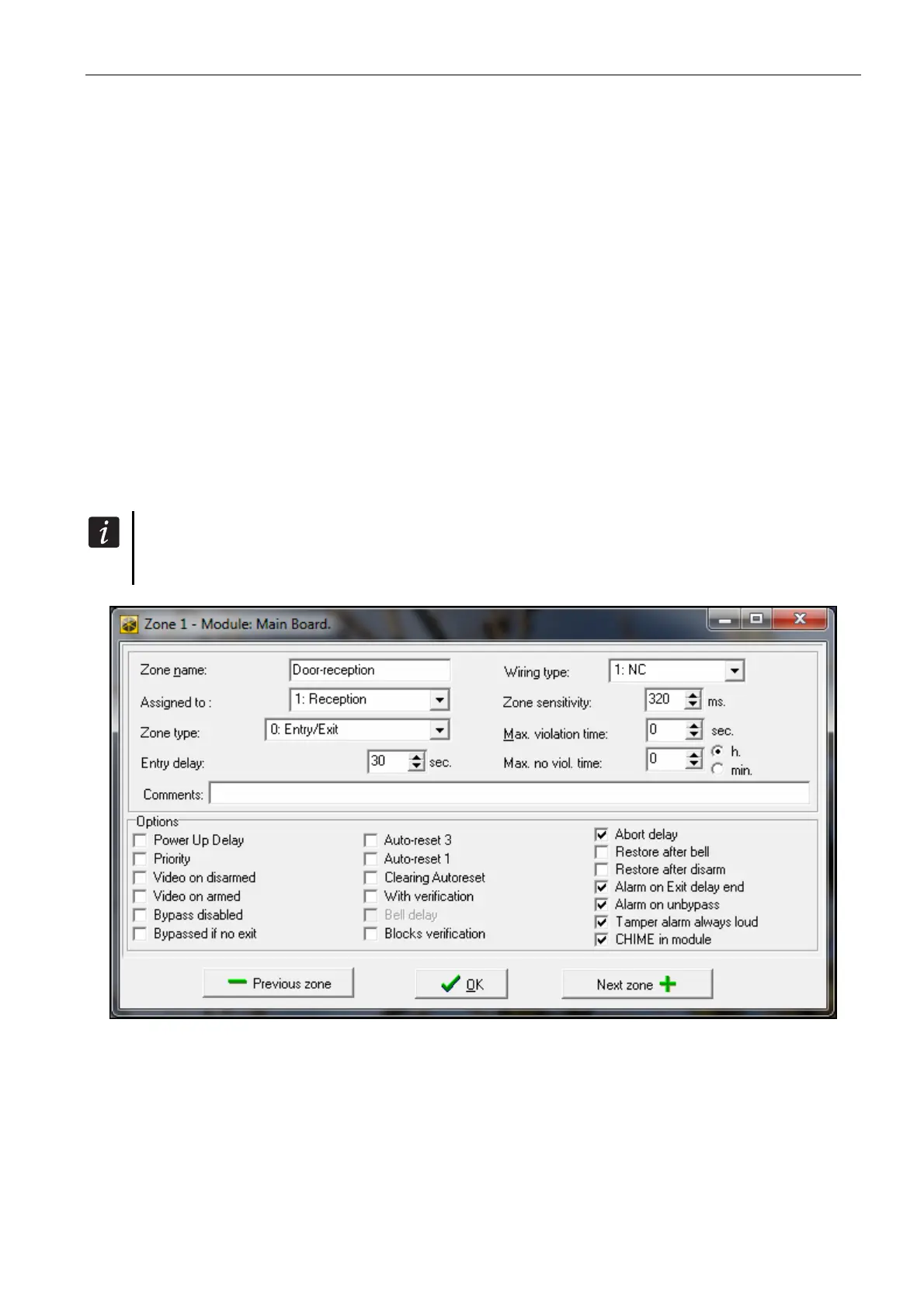 ) for the zone to be violated. You can program the following