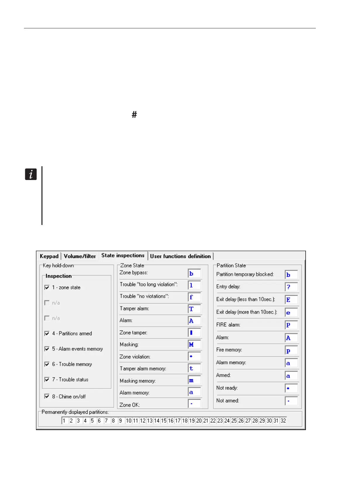 Keypad zones – for each of the keypad zones can be defined whether it will be used or not.