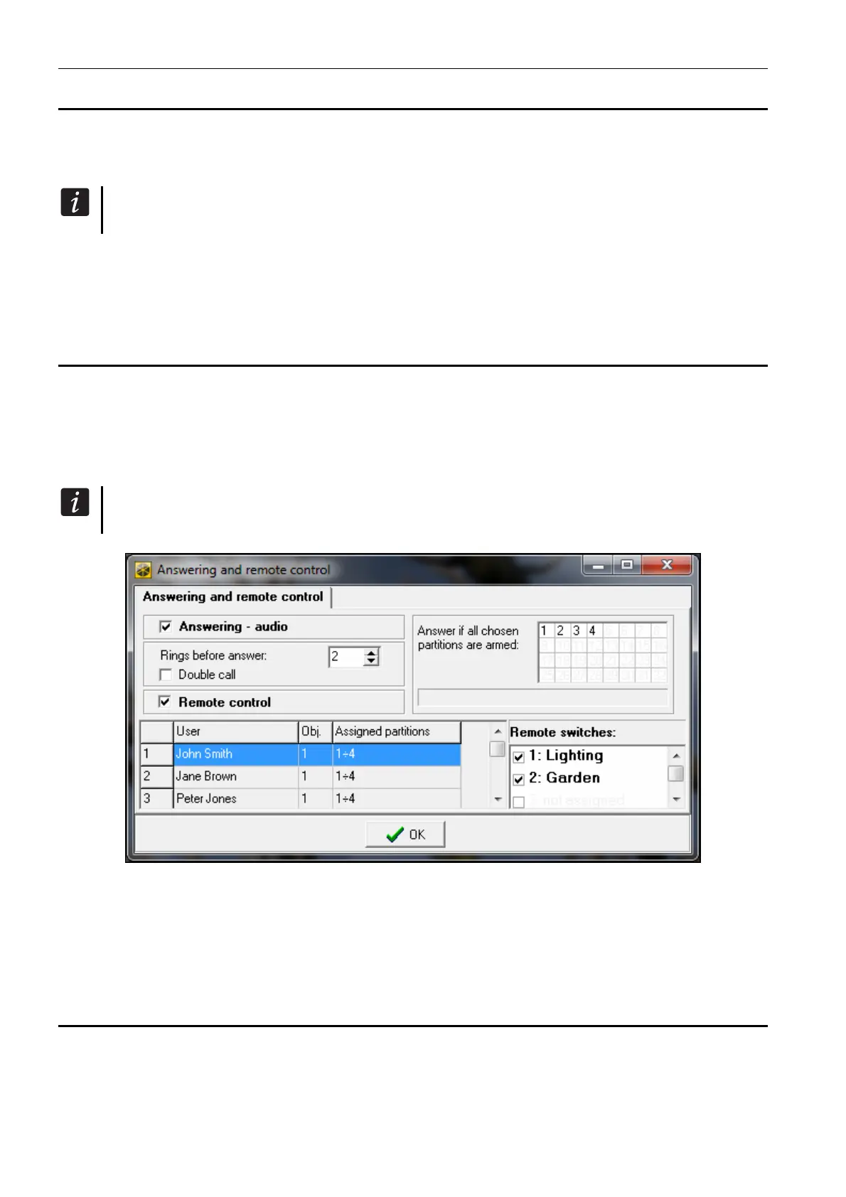 the partition status (arm mode, alarms). Owing to the telephone control function, the users
