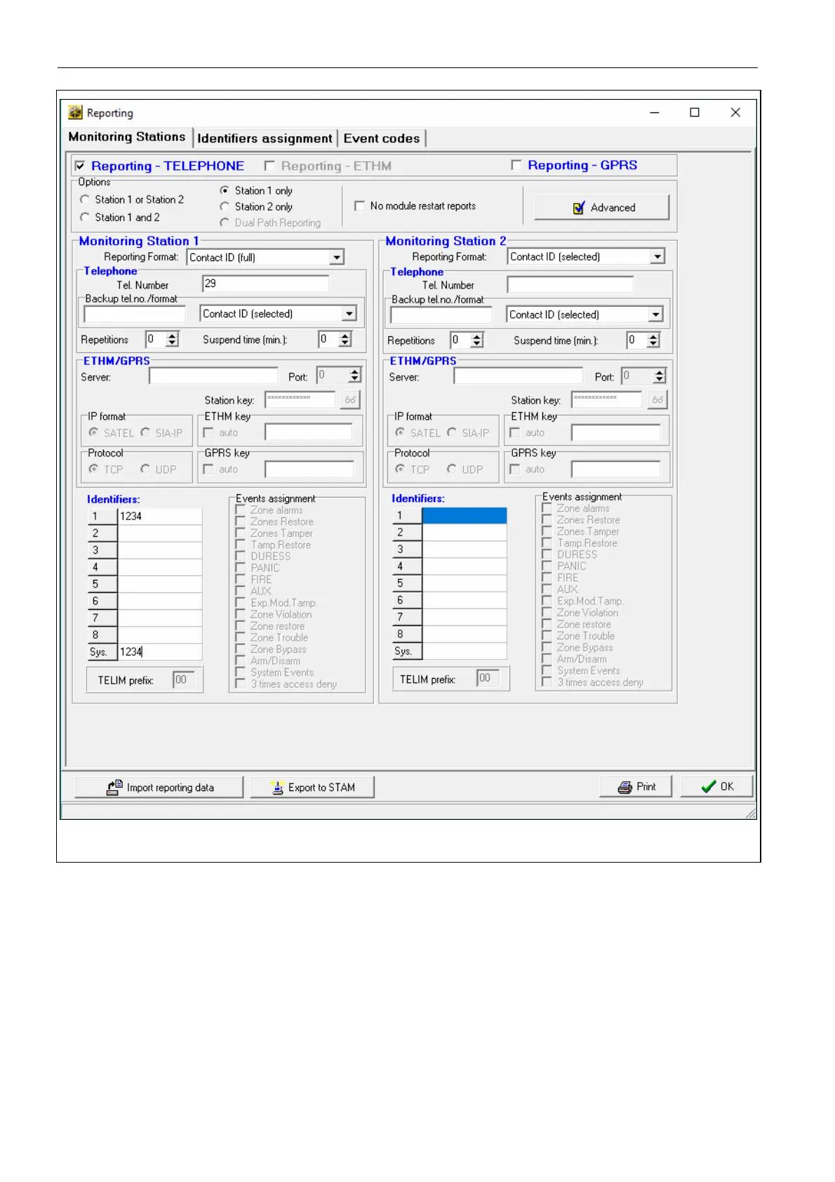 Fig. 2. Example of Reporting settings.