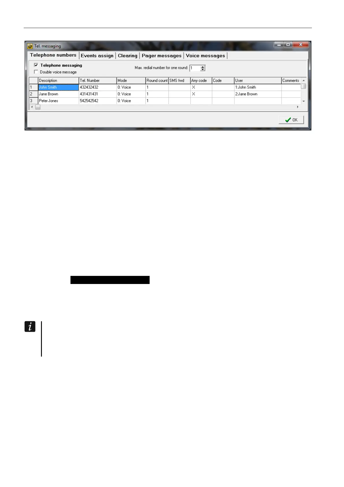 Tel. number – the telephone number to which messaging is effected.