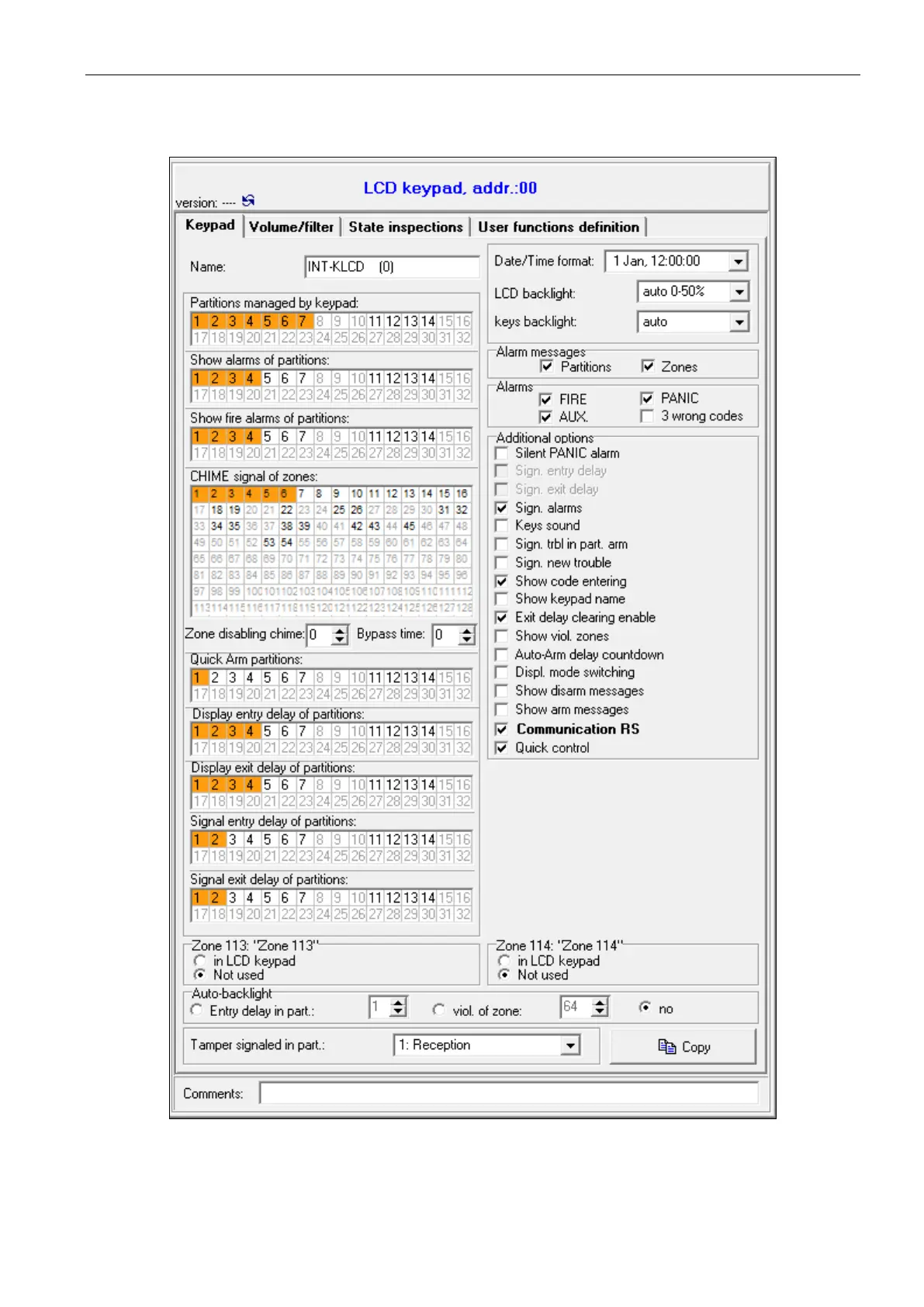 Show fire alarms of partitions [Fire alarms] the keypad can signal fire alarms from