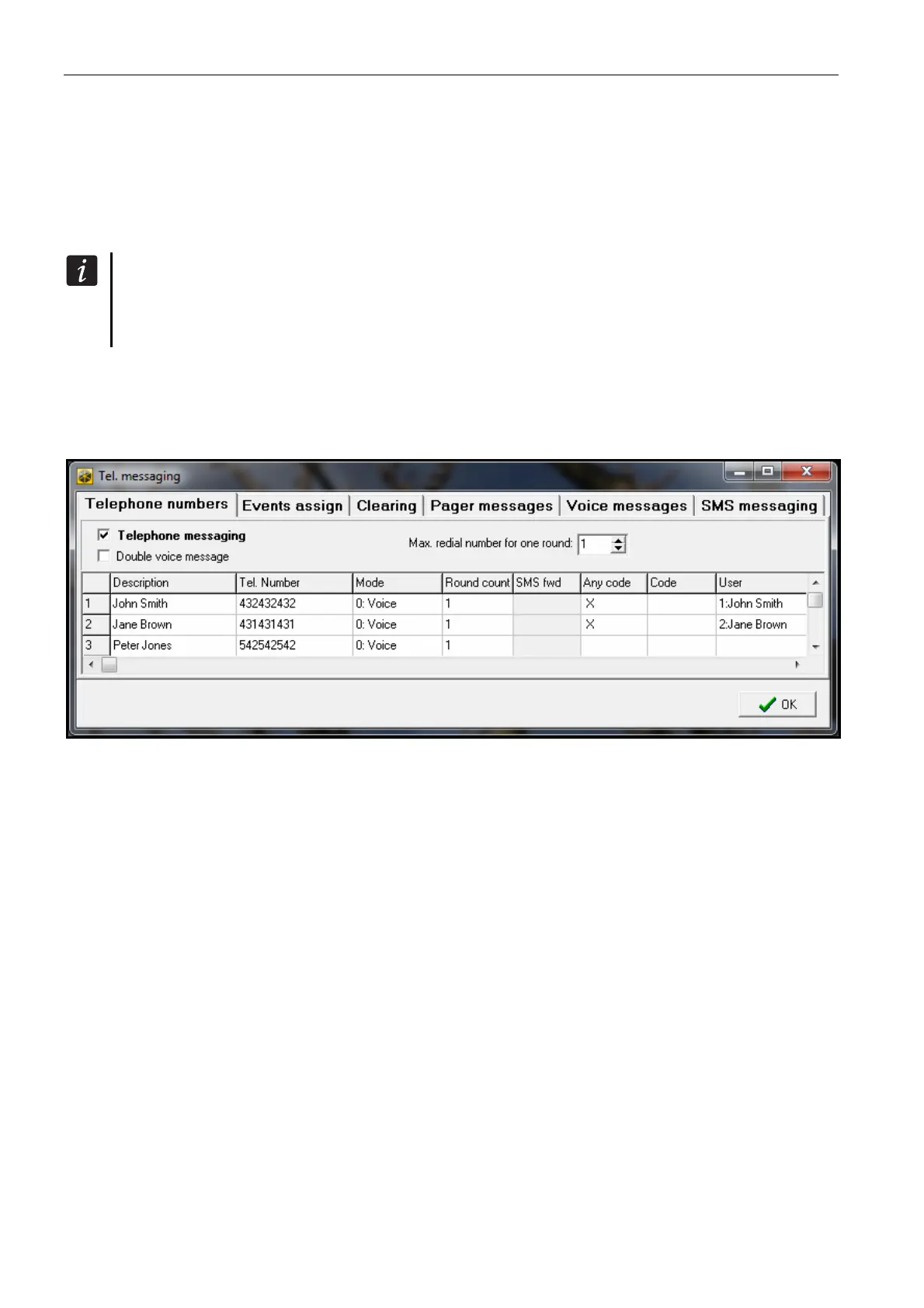 telephone number about the event, if the message reception has not been acknowledged.