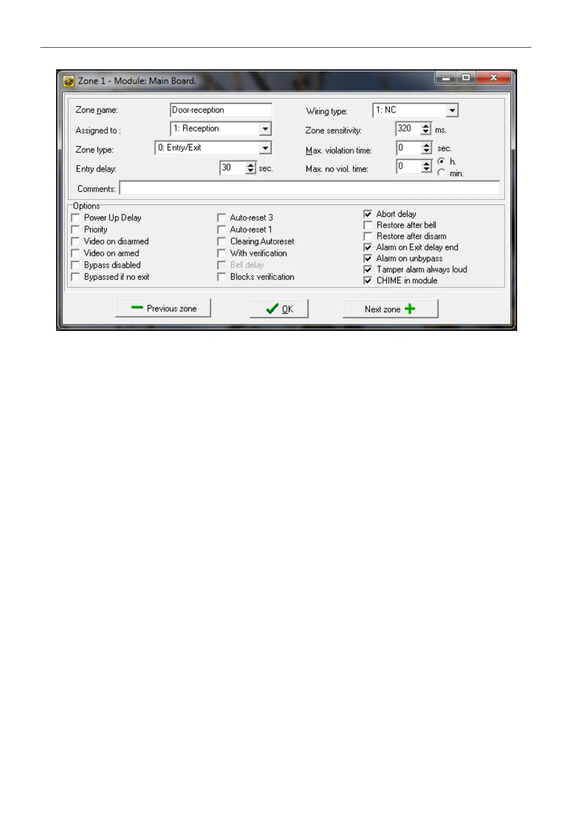 the partition it belongs to). If value 0 is programmed, the zone will only control the partition