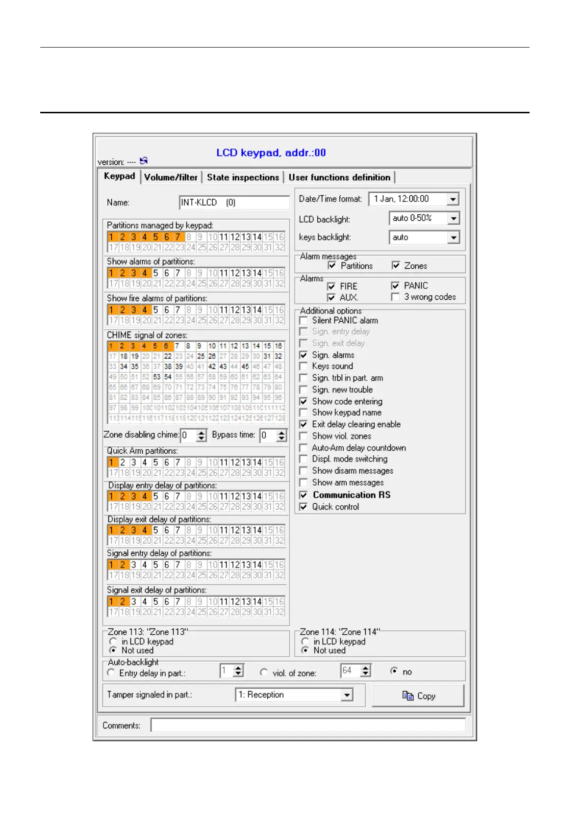 Satel INTEGRA Plus - Keypad Parameters and Options