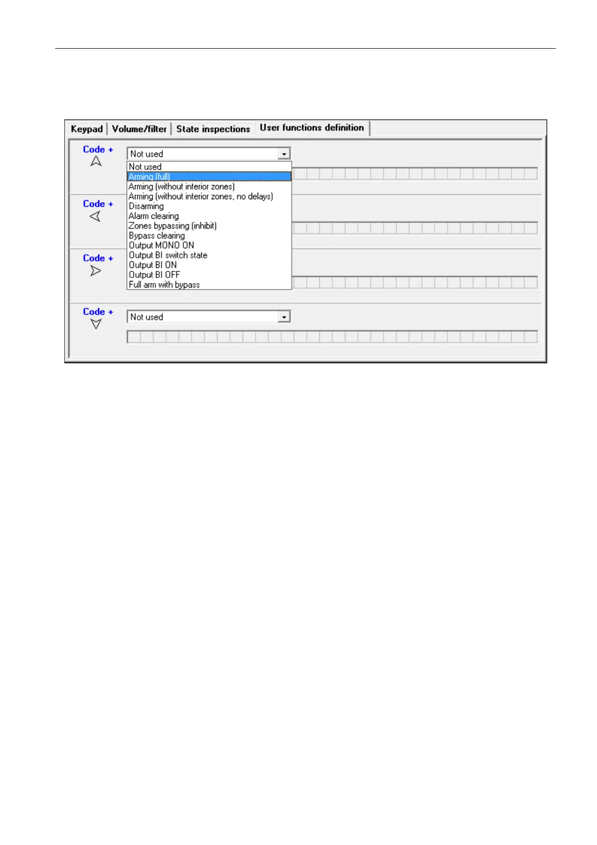 Fig. 10. “User functions definition” tab for keypad in the DLOADX program.