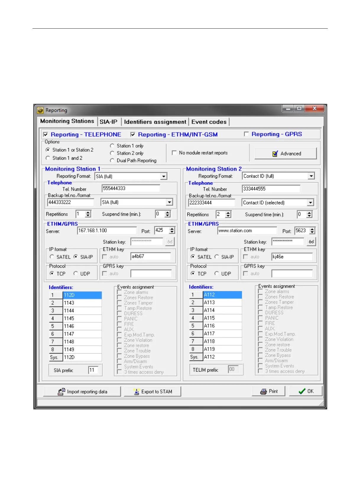 Fig. 11. Example of reporting settings in the DLOADX program.