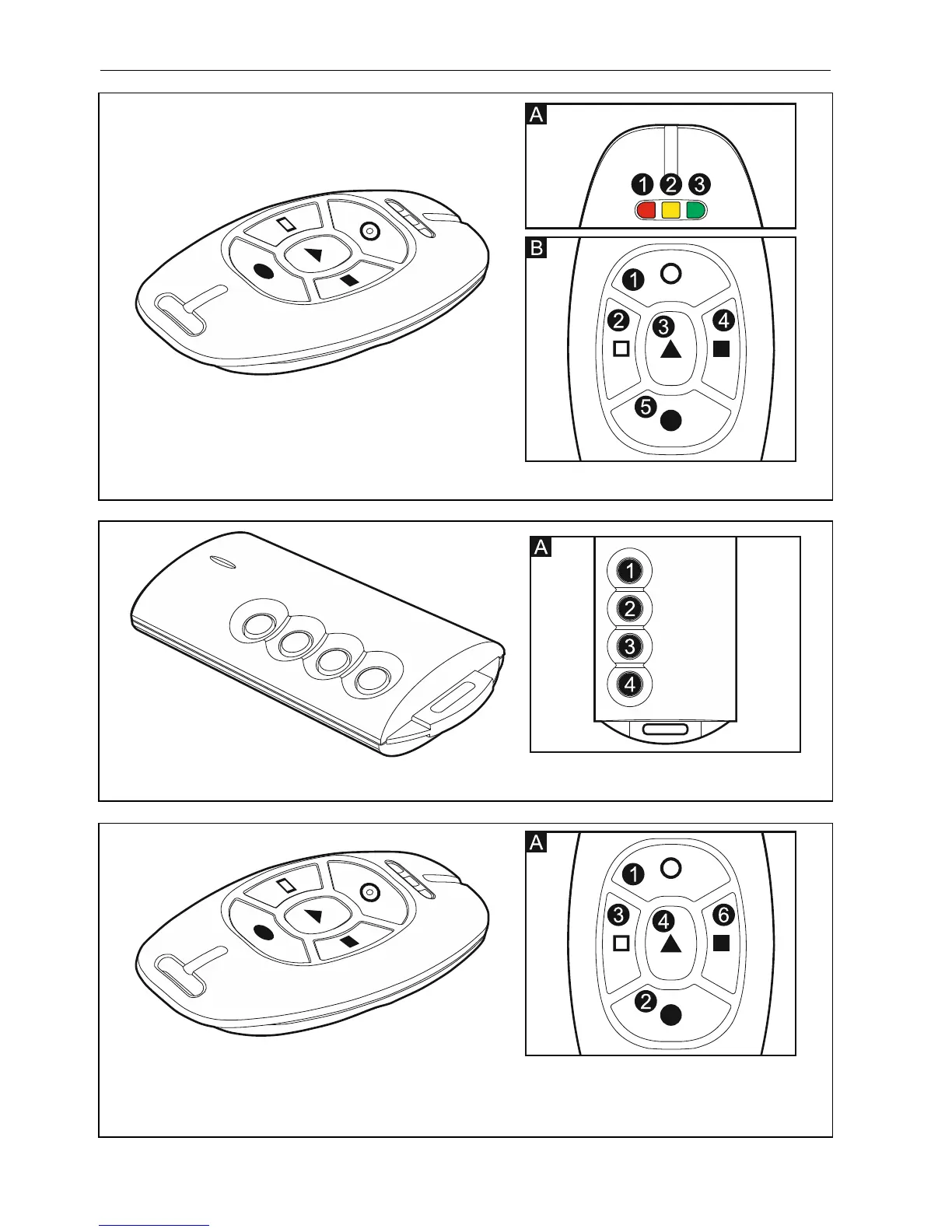 Fig. 8. MPT-300 keyfob (433 MHz keyfob). A – numeration of keyfob buttons. The button