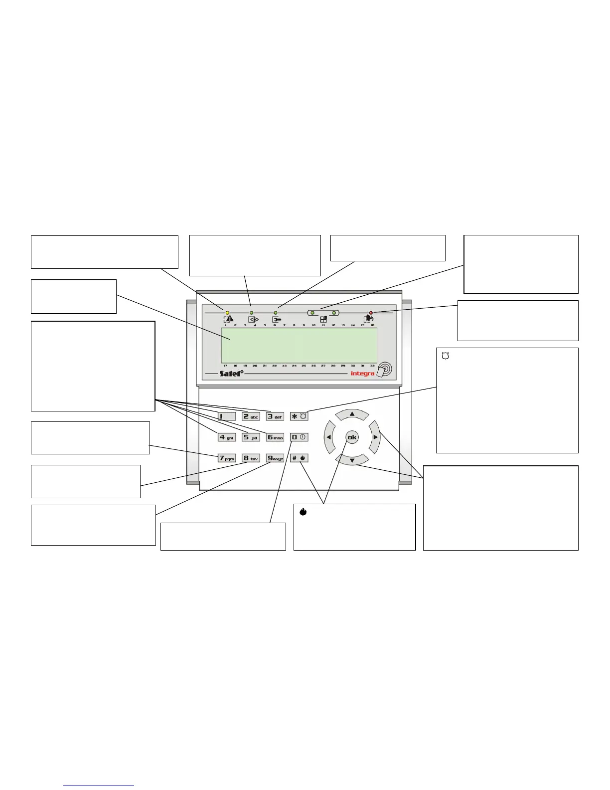 Key functions and LED signaling on LCD keypad (details – see pages 8–12).