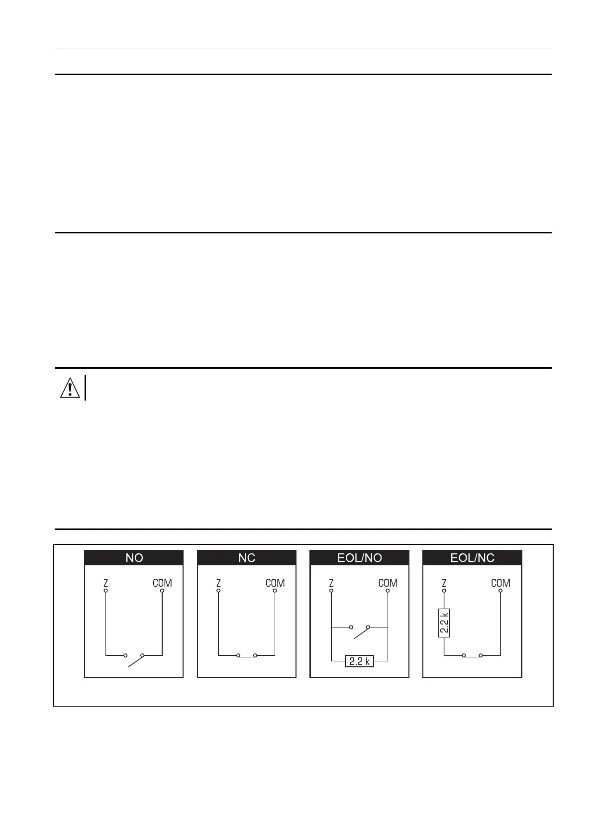 or closed contacts, where an 2,2 kΩ EOL resistor is used,