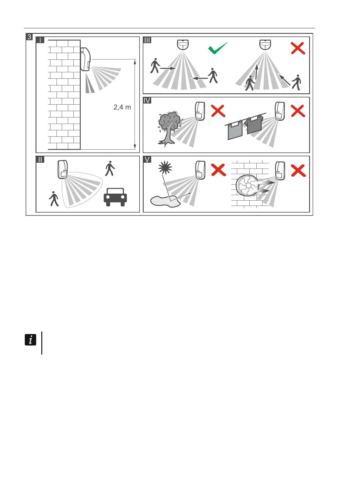 Don’t install the detector closer than 3 meters from the moving objects (e.g. tree branches,
