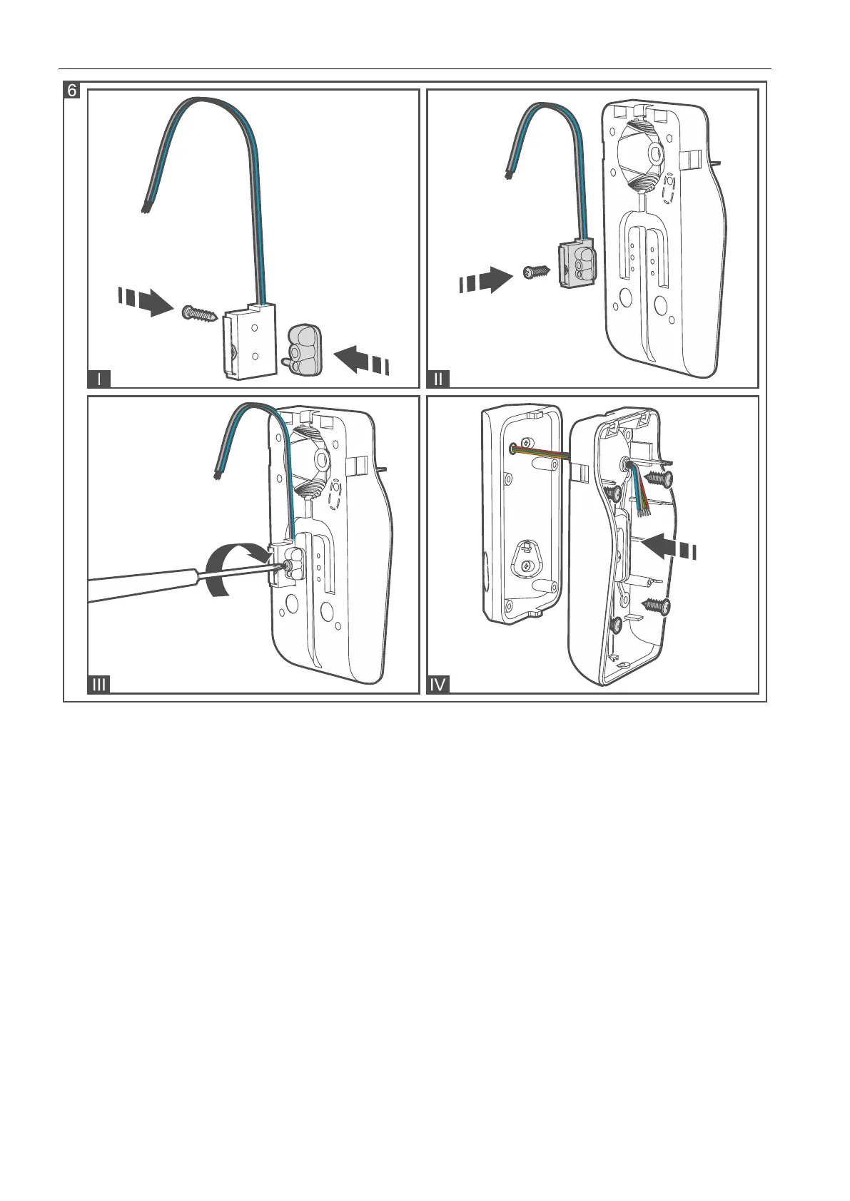 4. Run the cable through the opening in the enclosure base (Fig. 7-VI).