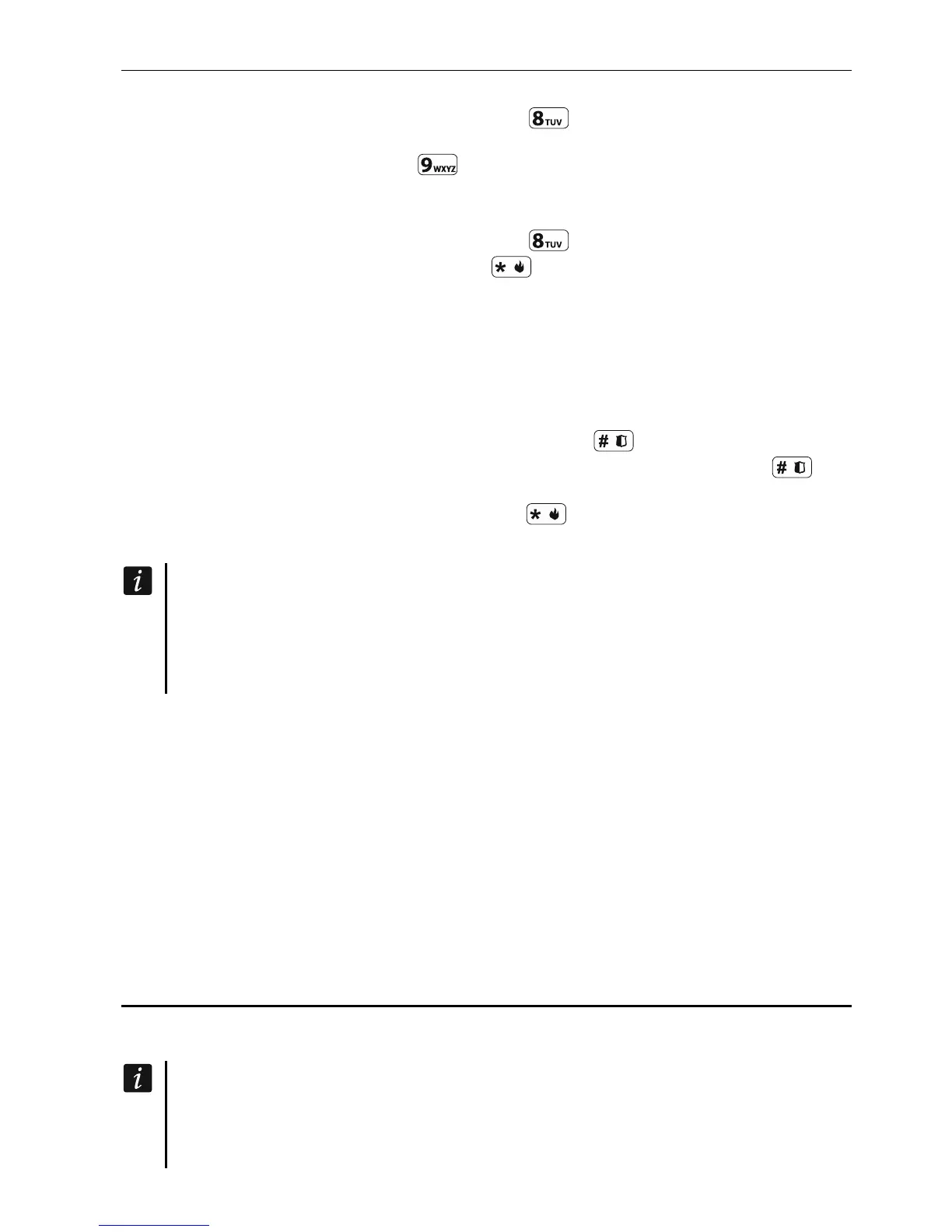 and 1 long beep – countdown of exit delay (if the time is shorter than 10 seconds, only